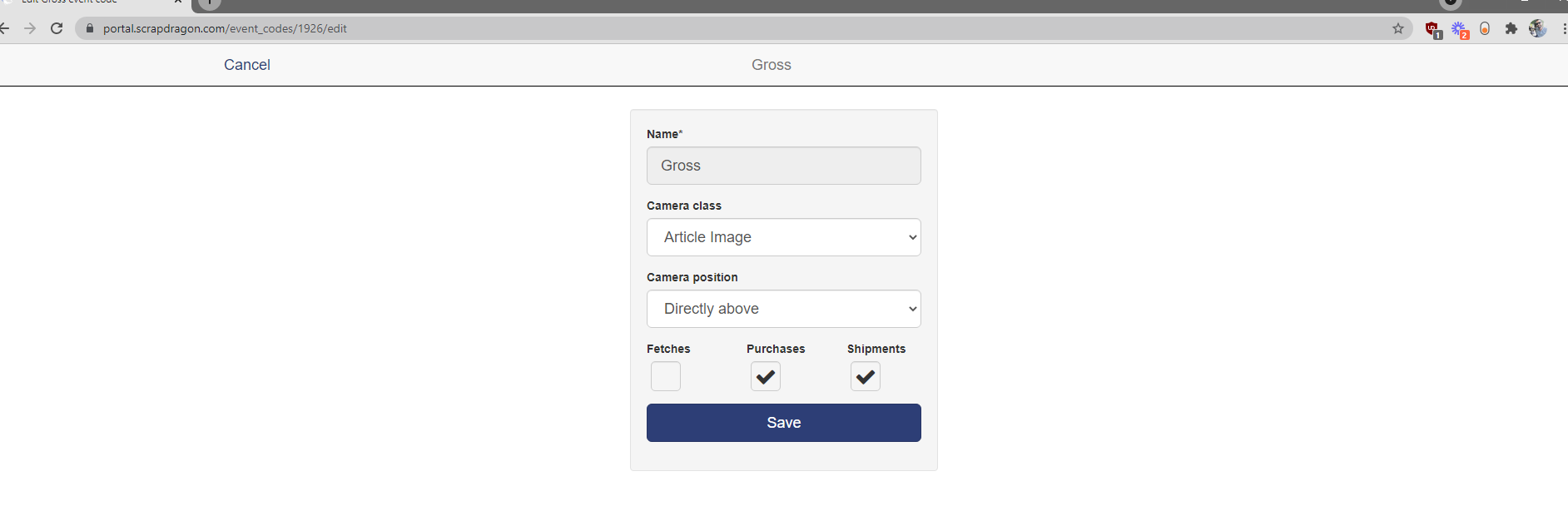 Portal: Update Event Codes for Photos (Purchases and/or Shipments)