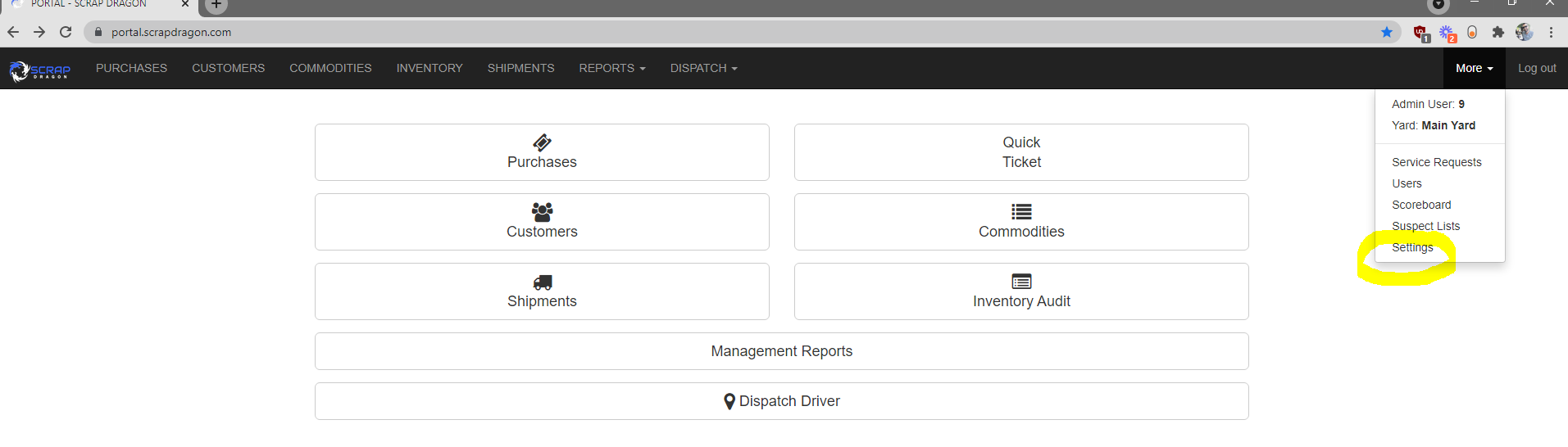 Select "more" from the drop-down and select "Settings."
